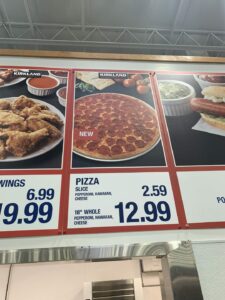 Did anyone notice that in the Food Court they changed the pizza? I just noticed a sign that says new on the pizza so asked what was new about the pizza. Apparently, the dough used to be frozen and now it is made fresh every day and the size of the pizza has been increased from 16″ to 18″. I’ve never been a huge fan of the Costco pizza before, the last time I tried it it was pretty soggy and greasy. This time when I tried it, it was definitely, less soggy, but still pretty greasy and heavy on the cheese. I’ll stick with the polish dog for now 🙂 or maybe they can bring in the cheeseburger?