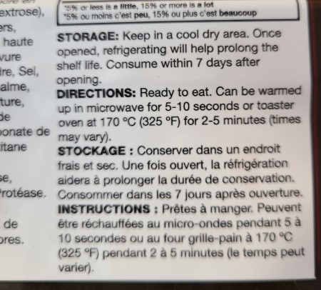 I paid $9.49 Canadian for the 850-gram container of cinnamon rolls. This isn’t exactly cheap but there are quite a few rolls in the plastic container so it’s not overly expensive.