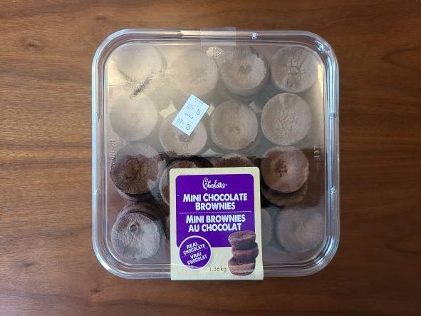 I paid $9.99 Canadian for the 1.36 container of mini chocolate brownies. There are about 48 brownies in the container, the price is pretty reasonable for so many brownies!