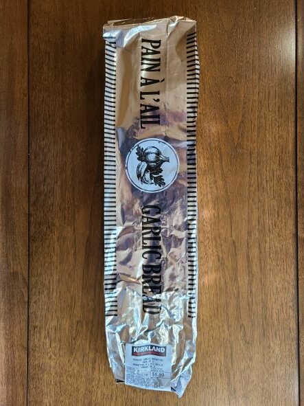 I paid $6.99 Canadian for the bag of two large garlic baguettes which isn’t overpriced but I do wish they sold just packs of one because two is a lot and it’s never as good from frozen.