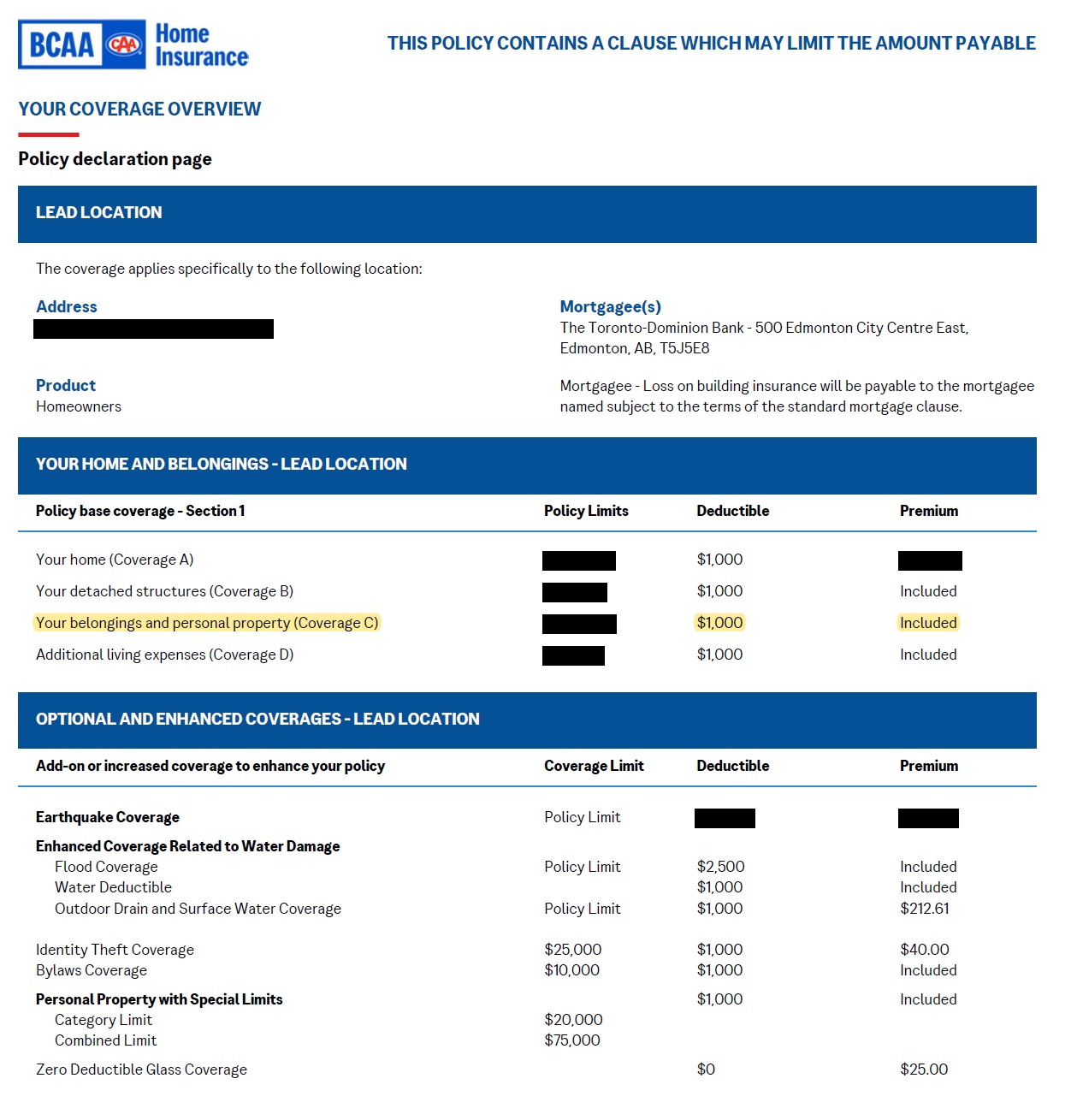 - A copy of your Homeowner’s/Tenant’s Insurance policy showing your deductible.
