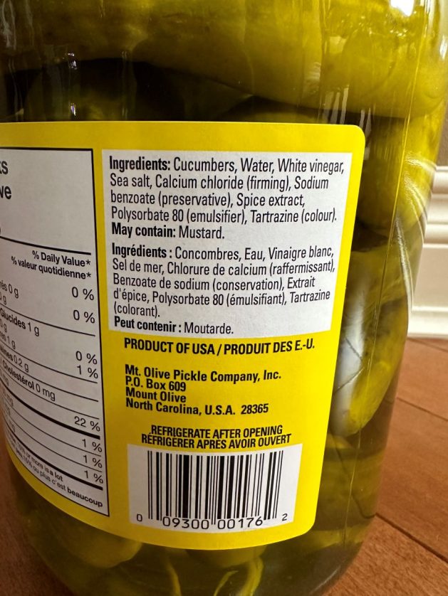 This is a huge jar of very large “baby” dill pickles for only $6.99 Canadian. That’s really reasonable! This jar is going to last me a while!