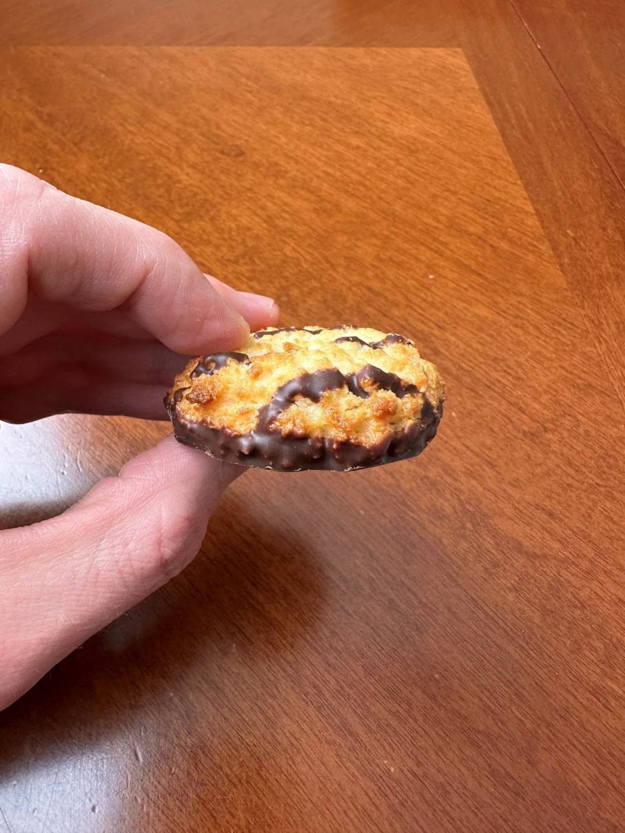 If you like coconut, you’ll these. I really enjoy their simplicity and deliciousness! The cookies consist of chocolate and coconut, the coconut is sweet, soft and chewy and the chocolate is overall pretty decent. It’s not the most amazing chocolate I’ve had but the combination of chocolate and coconut work really well together. The cookies also taste really fresh (I think from the packaging).