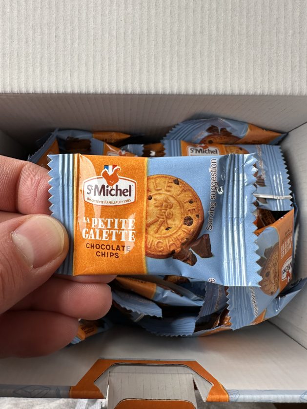 I wanted a new packaged cookie to try and picked up these St Michel La Petite Galette Chocolate Chip Cookies. The box comes with 200 cookies and costs $17.99 Canadian. That’s a lot of cookies but keep in mind they’re very small, so I wouldn’t say the box is cheap.