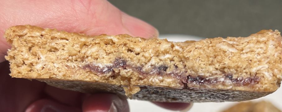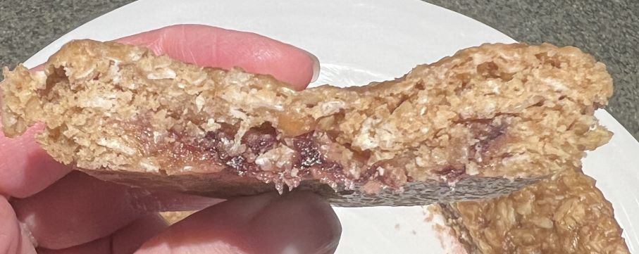 The texture of the oat bars is soft and chewy which I like, you get the texture from the whole oats that kind of stick to your teeth. The peanut butter is mixed into the bar part, not the filling. The filling is just the strawberry/grape jam. The strawberry flavor is good but it doesn’t really taste totally like strawberry. It’s sweet and fruity but doesn’t have that distinct strawberry flavor. The grape isn’t as good as the strawberry and also doesn’t have a real distinct grape flavor. It’s just like a sweet flavor that almost tasted like fig or date to me.