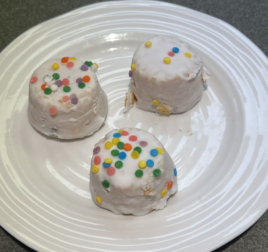 The birthday cake flavor isn’t as strong as I thought it would be. They’re sweet and nice and moist. If you like confetti cake mix cake, you’ll definitely like these. The icing is just a sweet vanilla icing and there’s not a ton of it but there’s enough. I definitely feel like these are more geared towards kids but as an adult I still liked them!