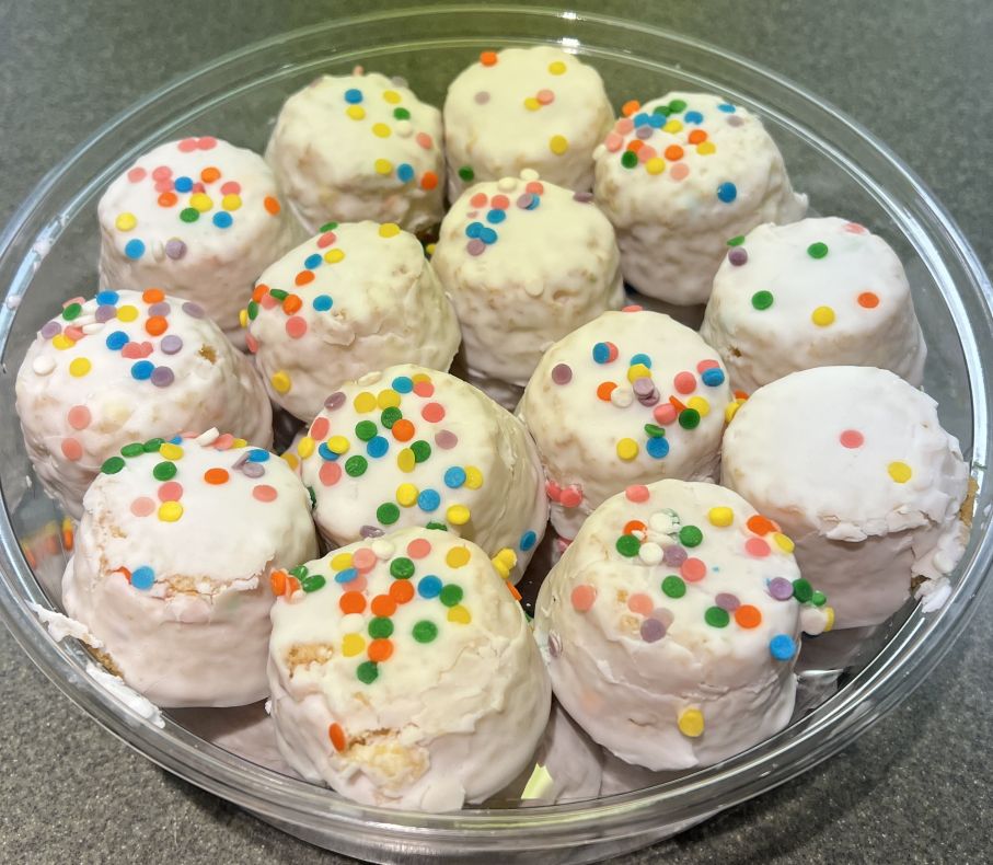 This weekend I’m reviewing these Upper Crust Bakery Birthday Cake Bites. I saw them on my most recent trip to Costco. They looked like a yummy sweet treat! The container comes 24 bites and costs $12.99 Canadian.