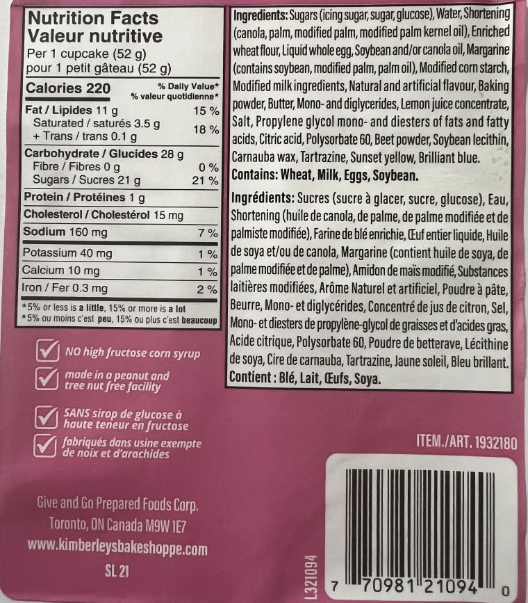 The best before date listed on the tray of cupcakes is about a week and a half from when I picked them up. I’m sure they can frozen without any issue if they’re not going to be consumed by the best before date. These are nut free cupcakes which means they’re school safe so they’d be great for a year end school party of birthday.