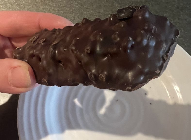 These are quite tasty for a protein bar although pretty sweet and they have a noticeable artificial sweetener flavor! The outer part of the bar has some crispy pieces on it which I like and the inside of the bar is quite chewy and also soft, like a brownie. You have to enjoy chocolate to like these but if you’re looking for a sweet snack (that tastes like a chocolate bar) with additional protein these are pretty good.