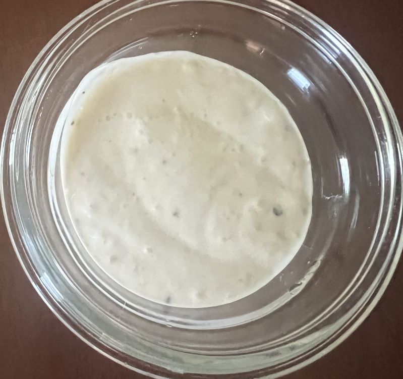 I made a Caesar salad when I was hosting people for dinner using this dressing and everyone seemed to like it. It doesn’t have a strong garlic flavor or strong anchovy flavor which I like but you still get that typical Caesar dressing flavor. It’s smooth and creamy and a little goes a long way. It tastes just as good as the Caesar dressing I get in the salad kits I buy.