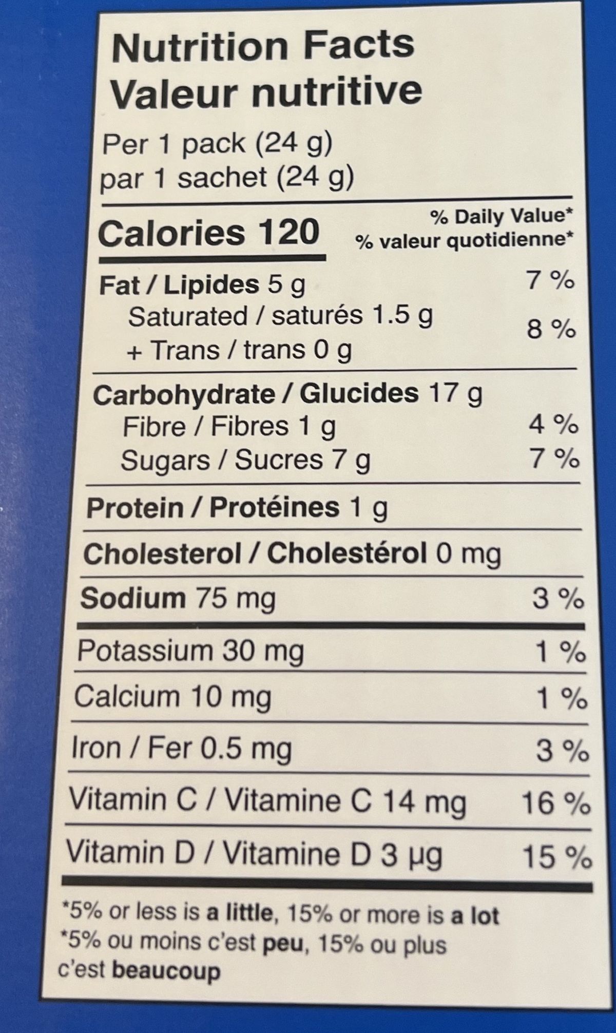 In one pack of cookies there are 120 calories, five grams of fat, 17 grams of carbohydrates, one gram of fibre, seven grams of sugar one gram of protein and 75 milligrams of sodium. One pack is pretty low in calories and doesn’t have that much sugar either! The cookies have cherry juice powder and mushroom powder.