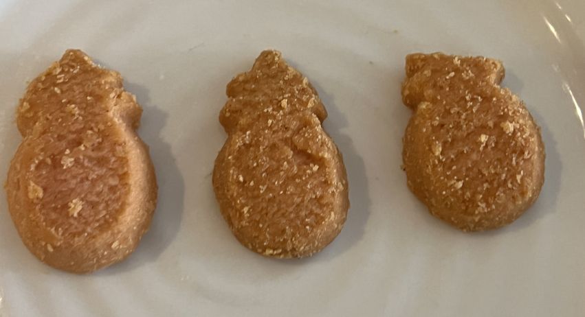 These cookies are really nice tasting. The passion, orange, guava is noticeable but not overly sweet. The main flavor I taste is the orange and it’s a bit artificial tasting but it doesn’t bother me. It’s a unique shortbread flavor that’s buttery and fruity at the same time. The texture of the cookies is crisp and crumbly and just kind of melts in your mouth.