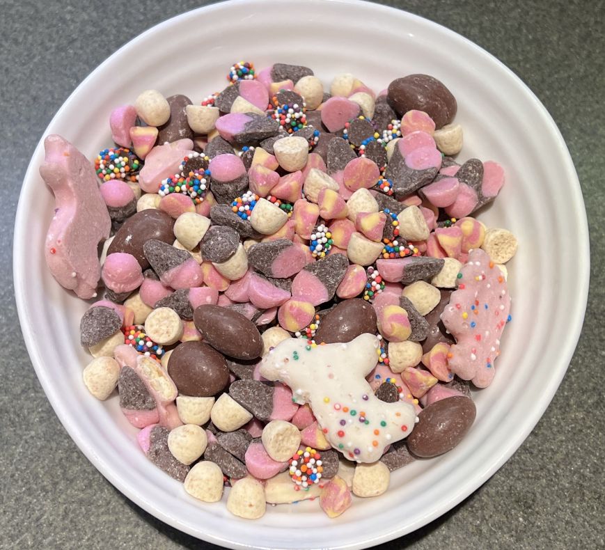 The best before date is roughly six months from when I bought the mix and the bag reseals which will help keep the mix fresh. This is definitely a sweet mix so it’s better for a dessert. I noticed the mix doesn’t have a lot of the sugar cookies in it, there’s a lot of the strawberry chocolate ice cream cones and swirls.
