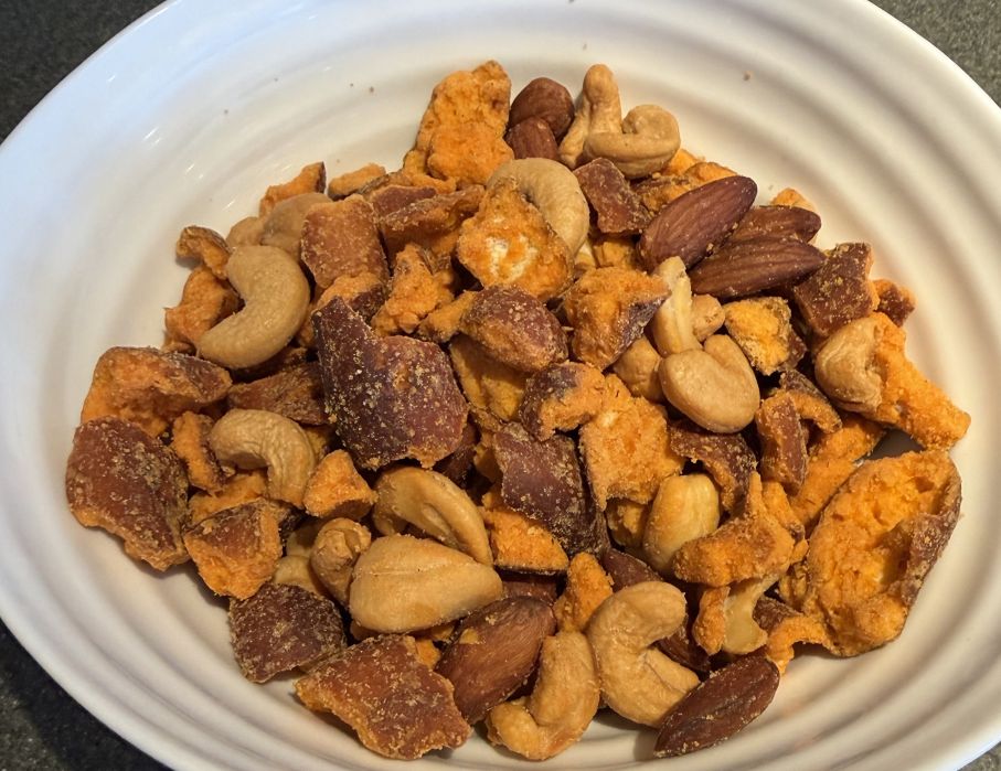 This mix has a bunch of different flavors! Noticeable ranch, buffalo and even some dill pickle seasoning. The mix is a lot less hot/spicy than I expected to be which I appreciate because I’m sensitive to spice. The pretzels are pretty crunchy, thick and have the most seasoning. The nuts have less seasoning and are fresh tasting. Overall this mix is really tasty and pretty addictive! I’ve also reviewed the Savanna Orchards Country Club Mix and the Savanna Orchards Honey Roasted Nuts.