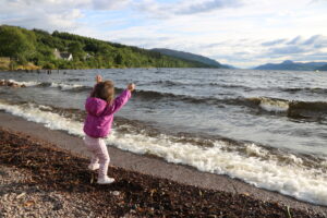 All in all we have been having a great trip, it only took 2 days for the little one to get used to the time change, but it was a long two days. The other day we drove up to Loch Ness and the little one could have spent hours throwing rocks into the lake. 🙂